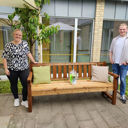 Die neue Bank findet ab sofort ihren Platz im Garten und lädt so unsere Gäste und ihre Angehörigen zum Verweilen und Innehalten ein. Unser Dank geht an das gesamte Team von Holz Rubath für dieses schöne Zeichen der Verbundenheit.