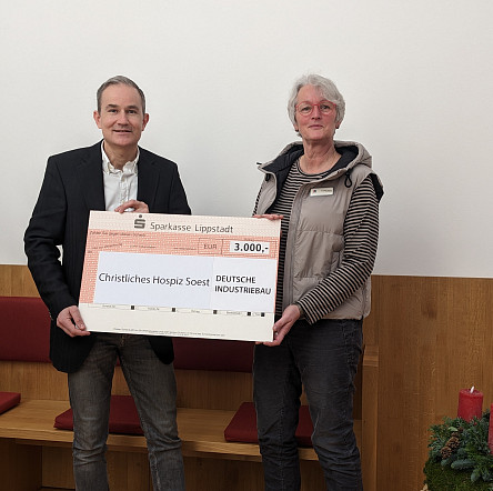 Im Namen von Volker Westermann, geschäftsführender Gesellschafter der Deutsche Industriebau Gruppe, überreichte er den Spendenscheck in Höhe von 3.000 € an Einrichtungsleiterin Angelika Köster. Herr Brunswieck sagte, das Unternehmen freue sich, das Hospiz zum dritten Mal zu unterstützen, da das Geld einem unverzichtbaren Zweck in der Region diene.