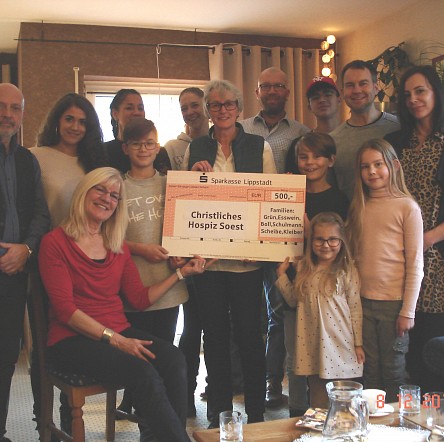 Weihnachtswichteln im Familienkreis: Seit mehreren Jahren ist das in der Familie von Barbara Grün eine beliebte Tradition. Dabei überlegt sich jeder ein hübsches Geschenk im Wert von jeweils bis zu 50 Euro. Auch in diesem Jahr trafen sich zehn Erwachsene und fünf Kinder in dem weihnachtlich dekorierten Einfamilienhaus in der Altenburgerstraße in Lippstadt. Doch diesmal hatte Barbara Grün die Idee, einmal anderen Menschen eine Freude zu machen und so wurde gemeinsam beschlossen für das Hospiz zu spenden. Die Arbeit des Christlichen Hospizes Soest hat die Lippstädterin schon lange beeindruckt. Sie nahm Kontakt zur Leiterin Angelika Köster auf. Diese kam gerne persönlich vorbei, um die Spende in Höhe von 500 Euro entgegen zu nehmen. Auch die Bitte, das Geld im musikalischen Bereich einzusetzen, wurde erfüllt. Es soll demnächst in die Klangtherapie mit einfließen.